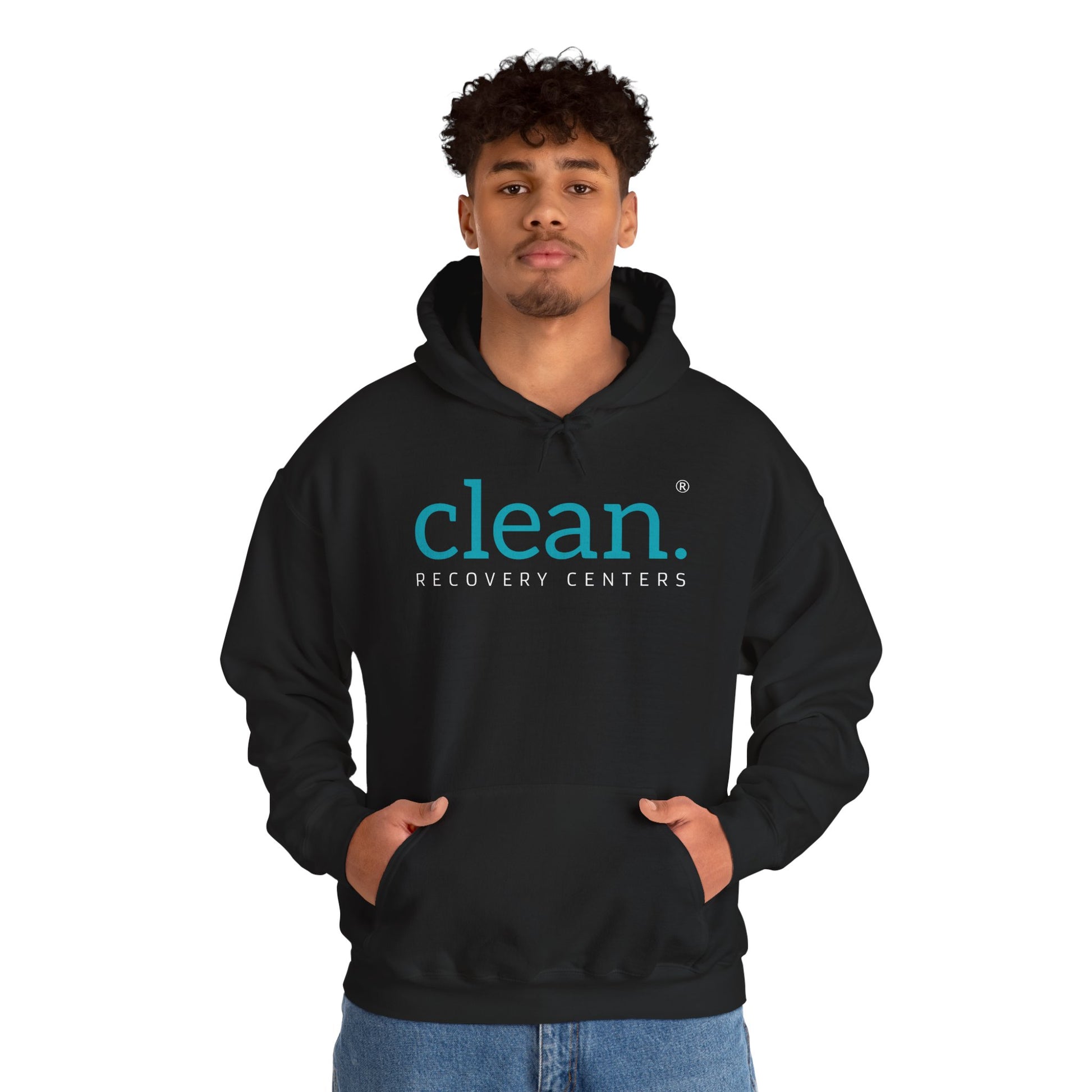 Clean Recovery Centers logo printed on center front of Hoodie. Back of garment is blank.