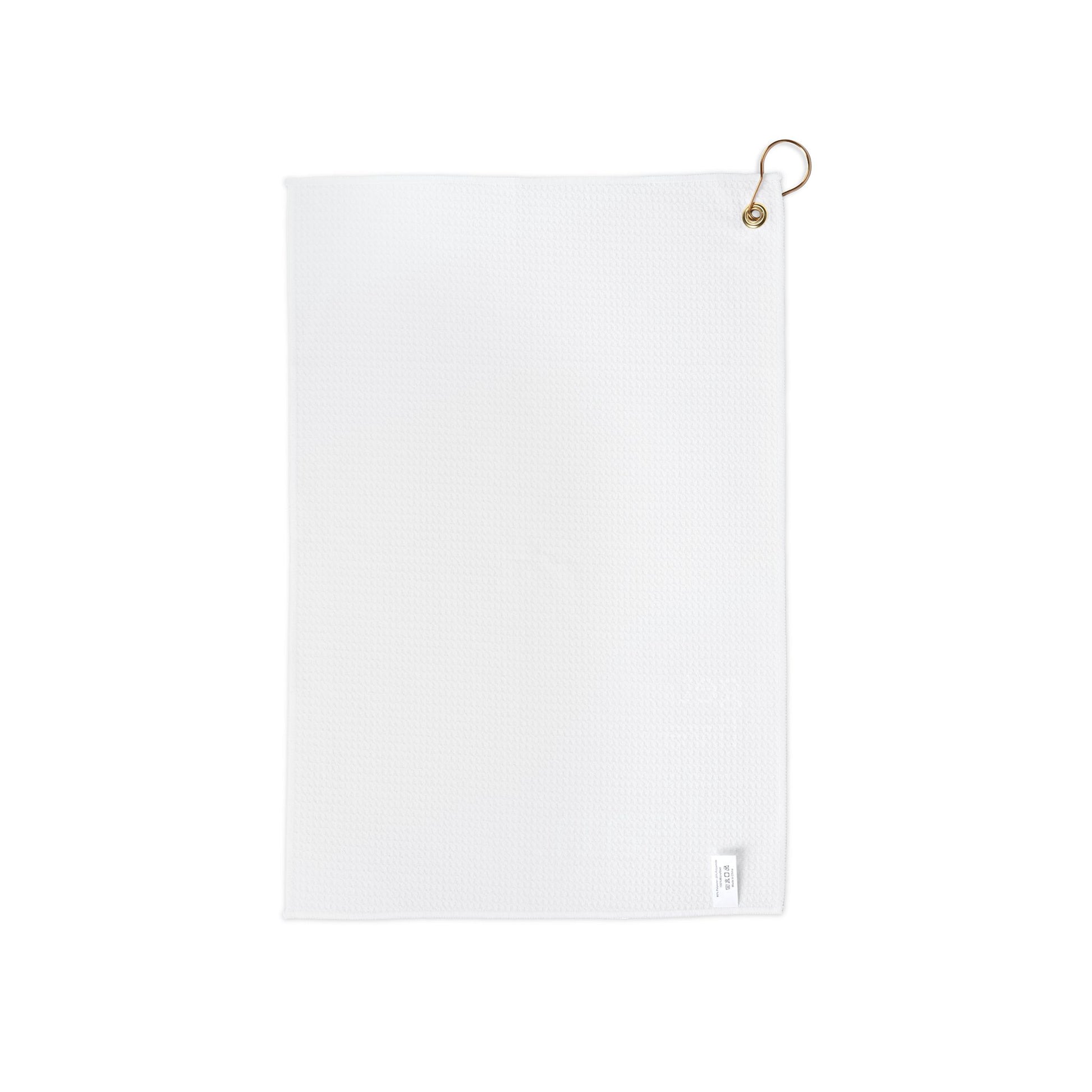 A compact, high-performance golf towel that blends lightweight portability with strong absorbency. The microfiber fabric feels soft against clubs and hands while quickly wicking away moisture and dirt. A gold grommet and ring make it easy to clip to a bag, cart, or belt loop so it stays within reach during play. The print on one side adds subtle personality without bulk, and the one-size design fits neatly into any golf setup or travel kit. Durable fibers resist stretching and fading, so it keeps performing round after round.